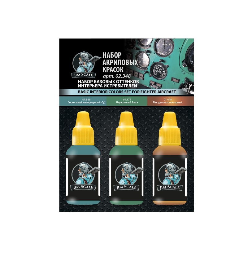 Набор красок Jim Scale 02.348 Базовые оттенки интерьера истребителей, 3 шт.