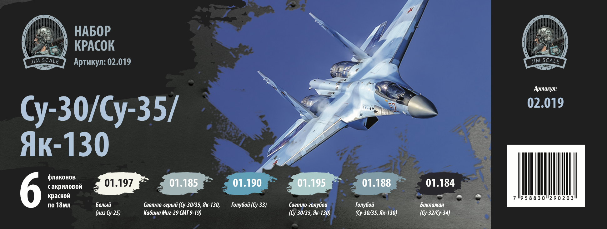 Набор акриловых красок Jim Scale 02.019 "Су-30, Су-35, Як-130"