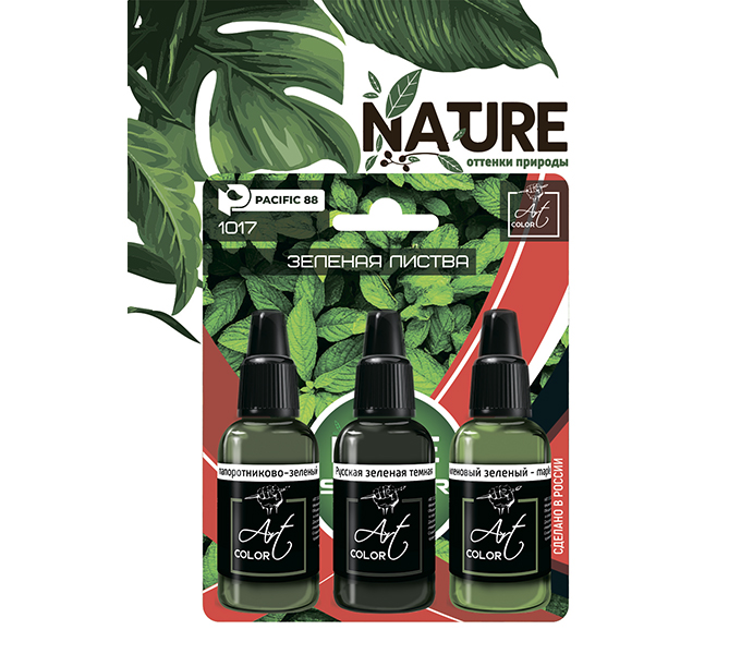 Набор красок Pacific88 Art color “Зеленая листва” (Green foliage), 3 цв.