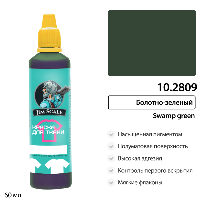 Вопросы и ответы по товару Краска акриловая Jim Scale 10.2809 для ткани, цвет Болотно-зеленый, 60 мл