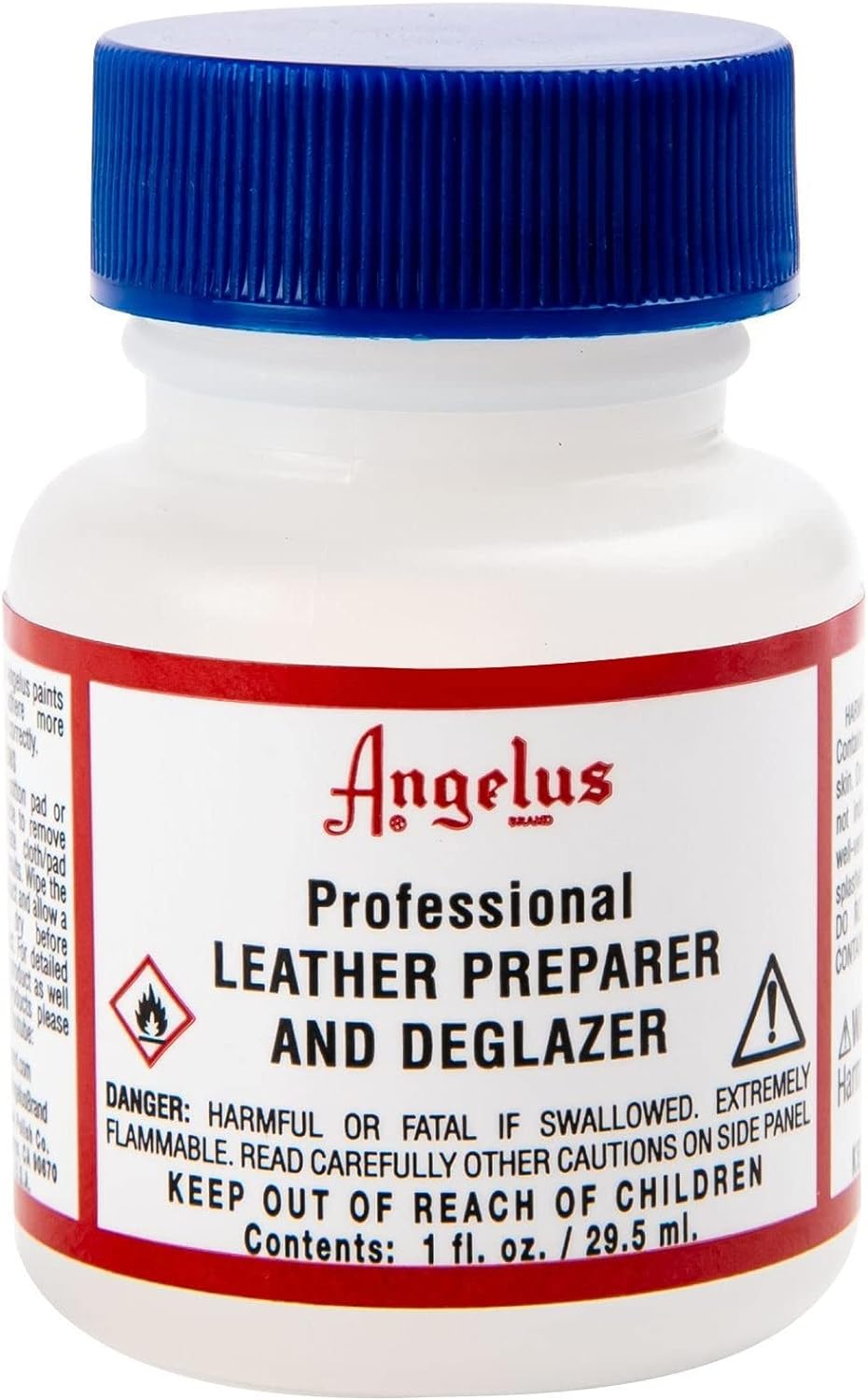 Важно: используйте этот продукт только на коже, а не на пластике, резине или других материалах. Если вы хотите покрасить не кожаные изделия, например боковые края резиновой подошвы, лучше сначала тщательно промыть их водой с мылом. Основным компонентом Preparer & Deglazer является ацетон. Тем не менее, комбинация различных компонентов была специально скоординирована для использования на коже в сочетании с краской Angelus Leather Paint.