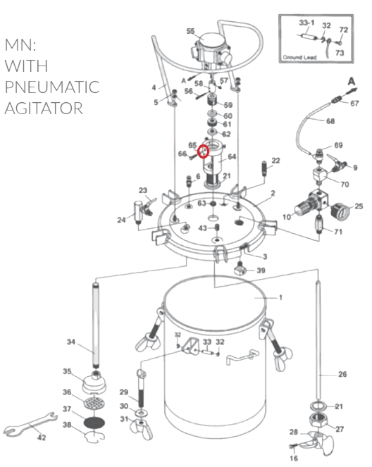 Iwata 04017470 Гайка шестигранная красконагнетательного бака PET 10MN / 30MN / 50MN