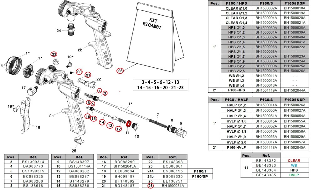Ani BH1500031A Ремонтный набор для краскопультов F-160, прокладки и подвижные части 12 элементов