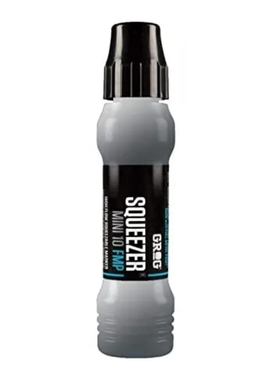 Корпус сквизера сделан из мягкого пластика, что легко позволяет сжать его без применения какой-либо силы и мощи, чтобы отмерить определенное количество краски. Если вы ищете маркер с непревзойденными подтеками, которым можно писать где угодно, сквизер Грог будет правильным выбором.