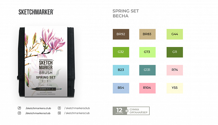 Набор маркеров Sketchmarker Brush Spring (12 шт. + сумка-органайзер)