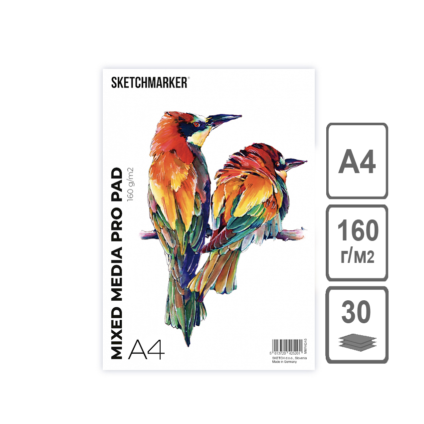 Sketchmarker Альбом для маркеров Mixed Media PRO PAD, 160 г/м2, A4, 30 листов
