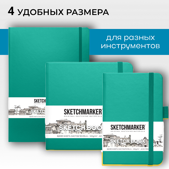 Вопросы и ответы по товару Sketchmarker Блокнот для зарисовок 140 г/кв. м, 80 л, 12*12 см, твердая обложка, изумрудный