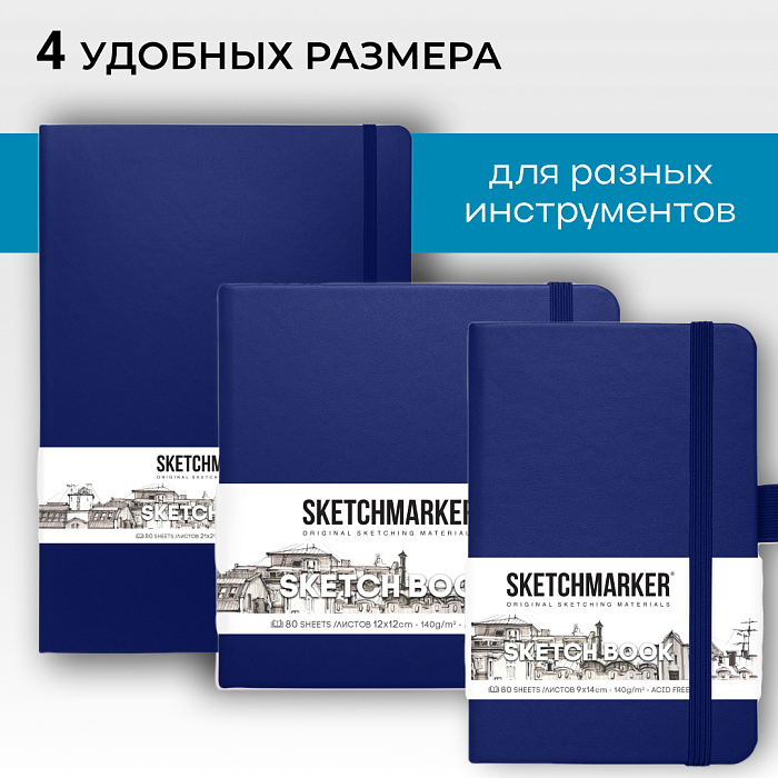 Sketchmarker Блокнот для зарисовок 140 г/кв. м, 80 л, 9*14 см, твердая обложка, синий