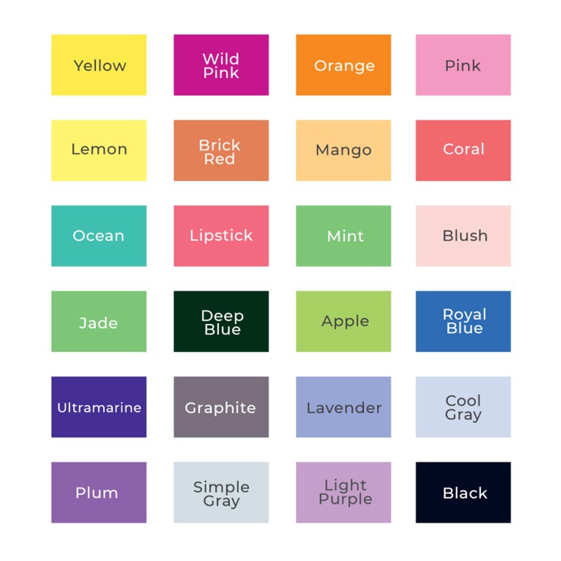 Каждый набор, вне зависимости от комплектации и количества маркеров, имеет креативную, авторскую обложку, которая отображает не только перечень цветов, но и передает настроение, палитру и тональность самого набора. Ориентируясь на тему, легко выбрать именно тот, который подойдёт для ваших работ. Наборы составлены профессиональными художниками-дизайнерами, поэтому приобретая их, вы получаете 100% качественно подобранную палитру, все цвета из которых точно будут использованы вами при создании рисунков. В набор входят 24 цвета.