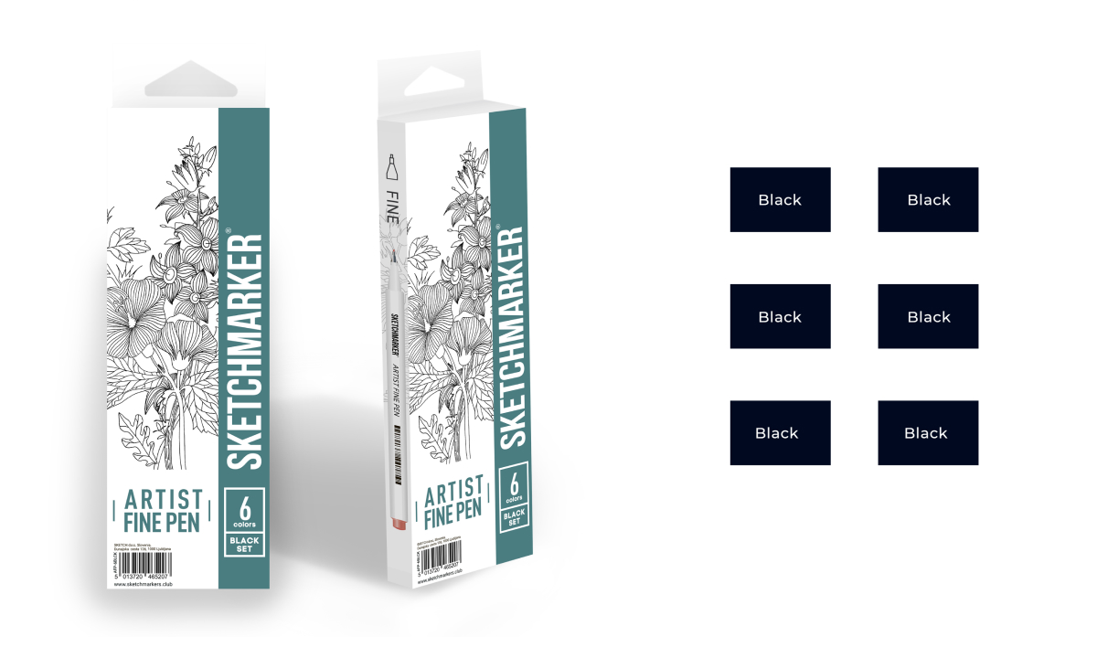 Набор капиллярных ручек Sketchmarker Artist fine pen Black, 6 цв.