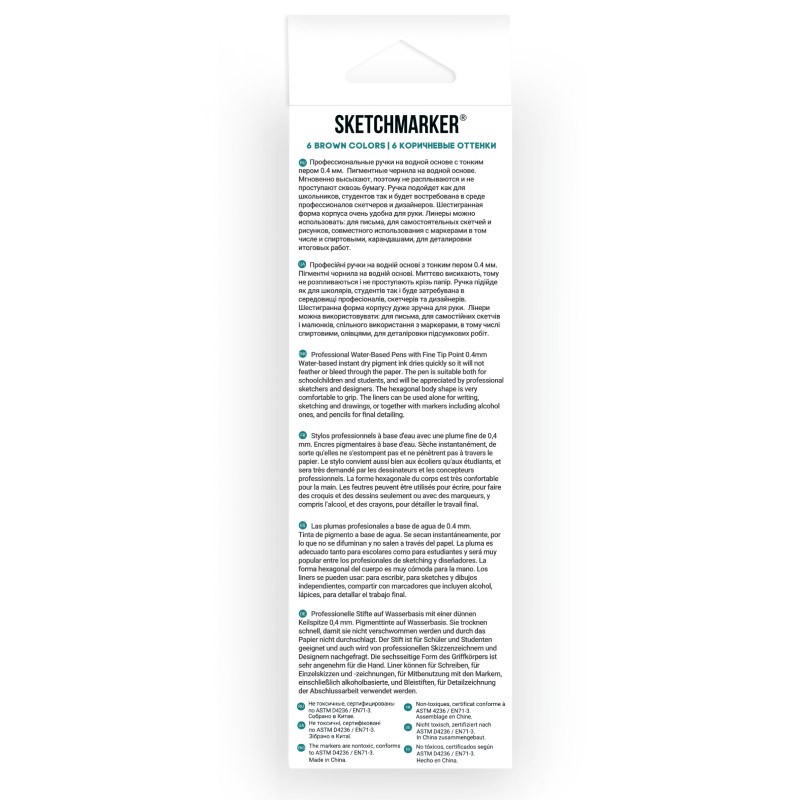 Набор капиллярных ручек Sketchmarker Artist fine pen Brown, 6 цв.