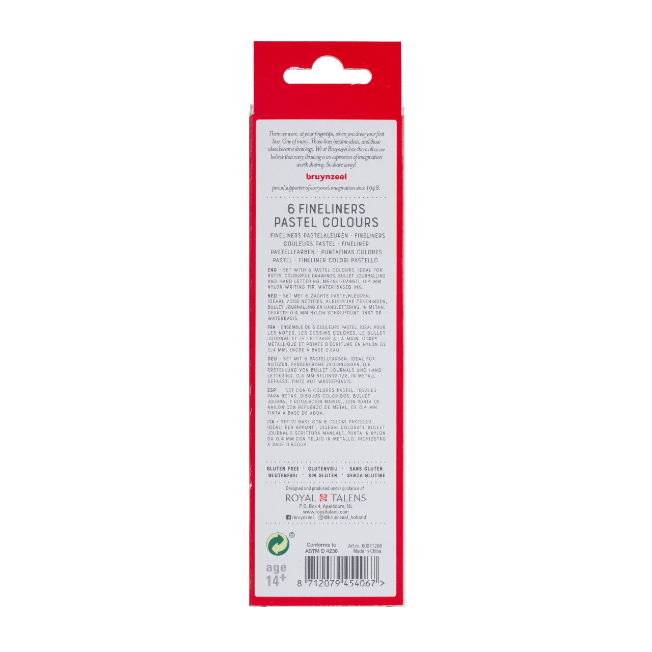 Набор капиллярных ручек Bruynzeel Teen Pastel (линер 0,4 мм), 6 цветов, в картонной упаковке