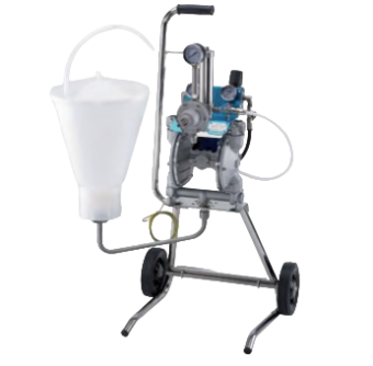 Насос диафрагменный Iwata DPS-12036CN.TE 1:1, на ножках с двумя колесами + емкость для ЛКМ, нержавеющая сталь