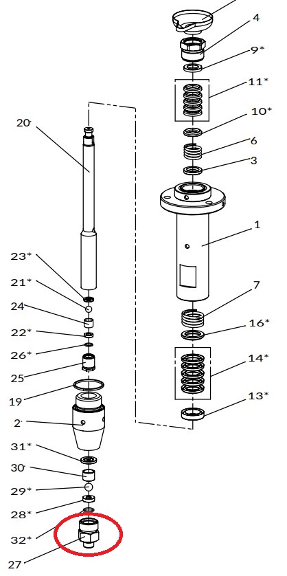 Устанавливается рядом с седлом клапана (Valve Seat, арт. 04943930) и шариком диаметром 5/8" (Ball, арт. 06662050).