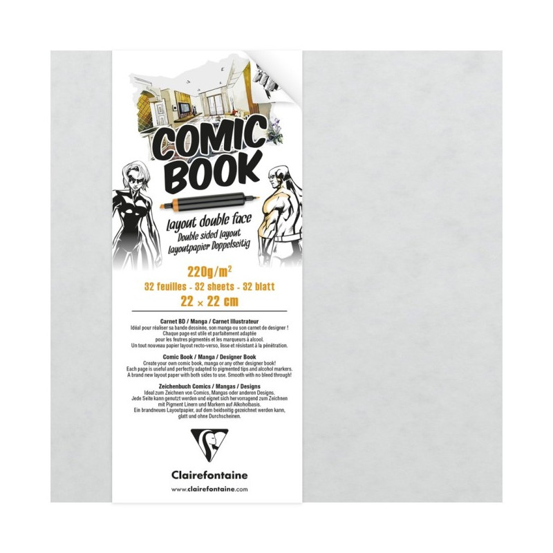 Clairefontaine Скетчбук 22*22 см, 220 г, 32 л, COMIC BOOK