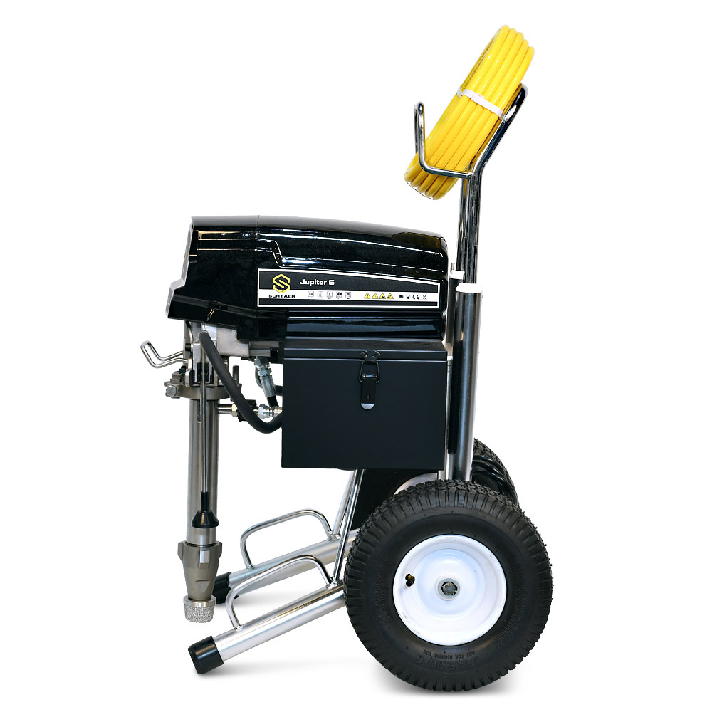 SCHTAER JUPITER 5 – представляет собой универсальную окрасочную машину для распыления вязких лакокрасочных материалов безвоздушным методом. Это улучшенная версия модели SCHTAER JUPITER 4. Обладает высокой производительностью, распыляет краску со скоростью 5,1 л/мин, способна работать на значительном удалении от установки (при подключении шланга максимальной длины). Аппарат обладает мощностью 2,6 кВт, работающий под давлением 227 Бар обеспечивает равномерное распределение лакокрасочных материалов разной степени вязкости по окрашиваемой поверхности.