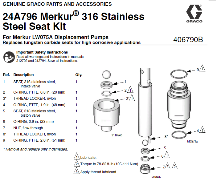 Вопросы и ответы по товару Graco 24A796 Ремкомплект клапанов насоса Merkur LV075A