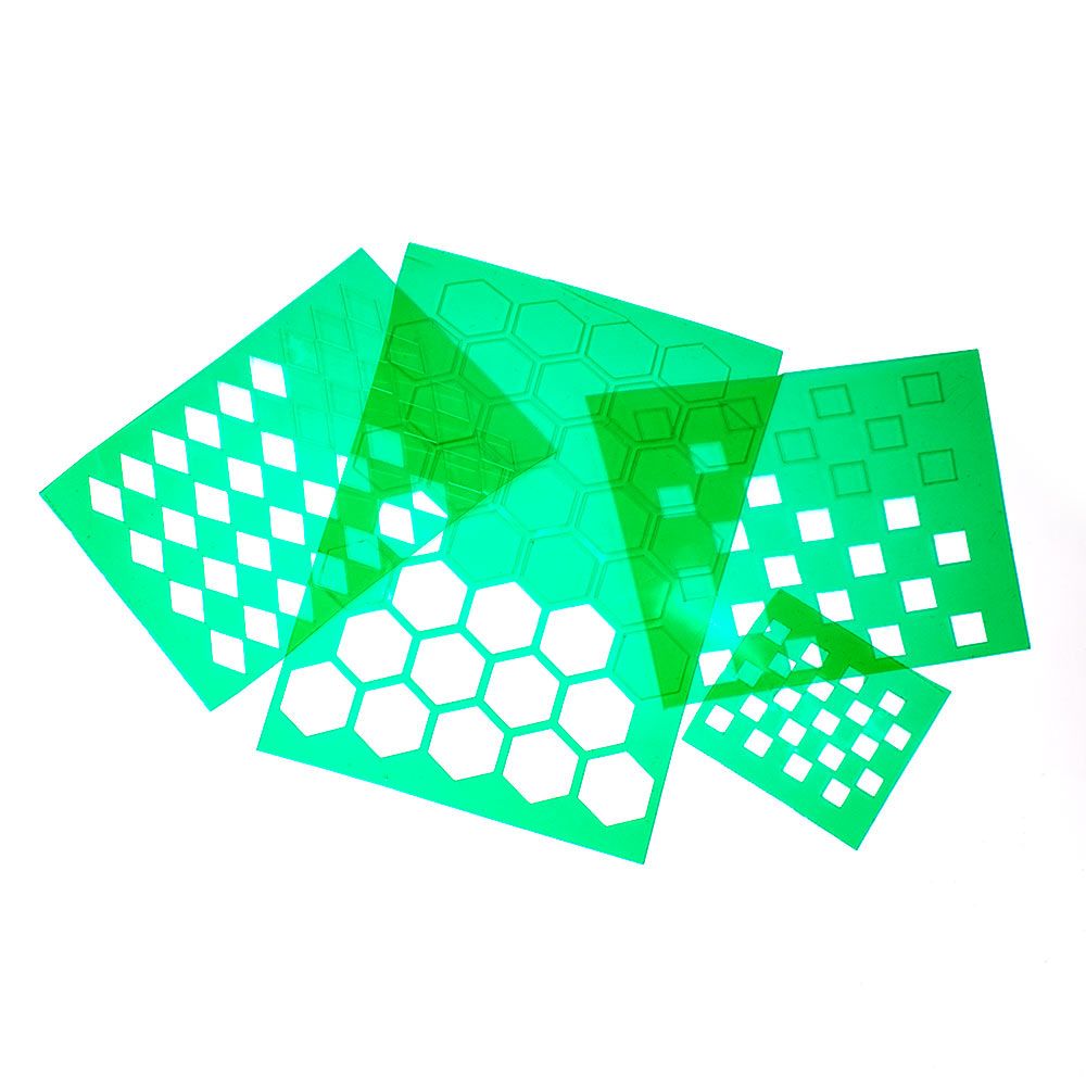 Данный трафарет станет незаменимым помощником при окрашивании террейна (масштабные строения и объекты на игровом поле) и техники в настольный играх и таких варгеймах как Warhammer, Infinity и многие другие. Узоры в виде чередующихся черно-белых клеток характерны для Орков (Orks), в виде ромбов характерны для Арлекинов (Harlequins), а в виде шестиугольников для Тау (Tau).